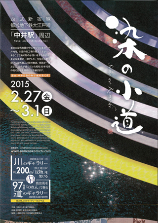 2015.2.27~3.1 二葉苑でお馴染みの染の町・新宿区中井駅周辺で、毎年恒例の「染めの小道」が開催されました。 川のギャラリーでは妙正寺川に色とりどりの反物が架け渡されました。